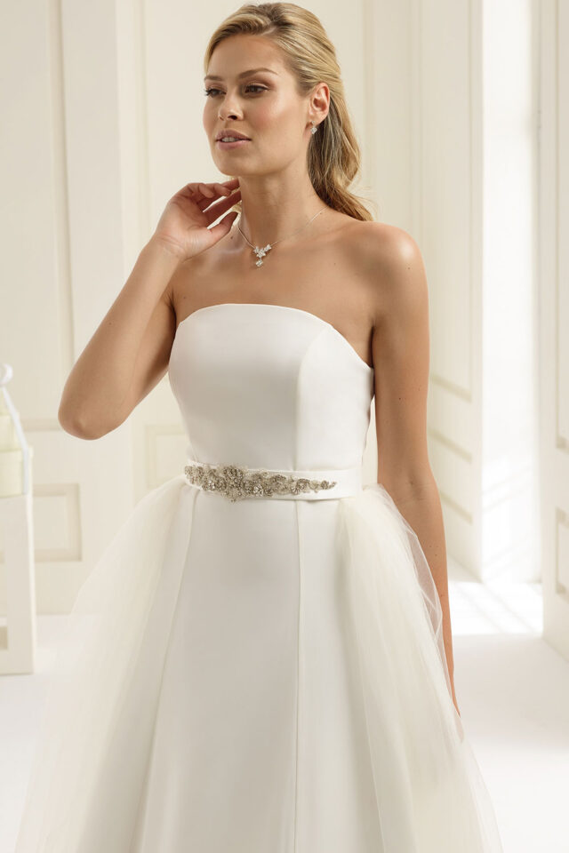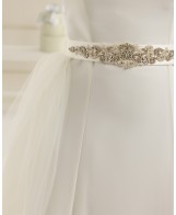 TULLE OVERSKIRT WITH BEADED WAISTBAND IN IVORY. The perfect bridal accessory to any wedding dress, tulle overskirt with embellished waistband in IVORY, one-size available to buy off the rail on sale at €180 . BRAND NEW – this is not a sample at Aibheil of Adare Co Limerick Ireland