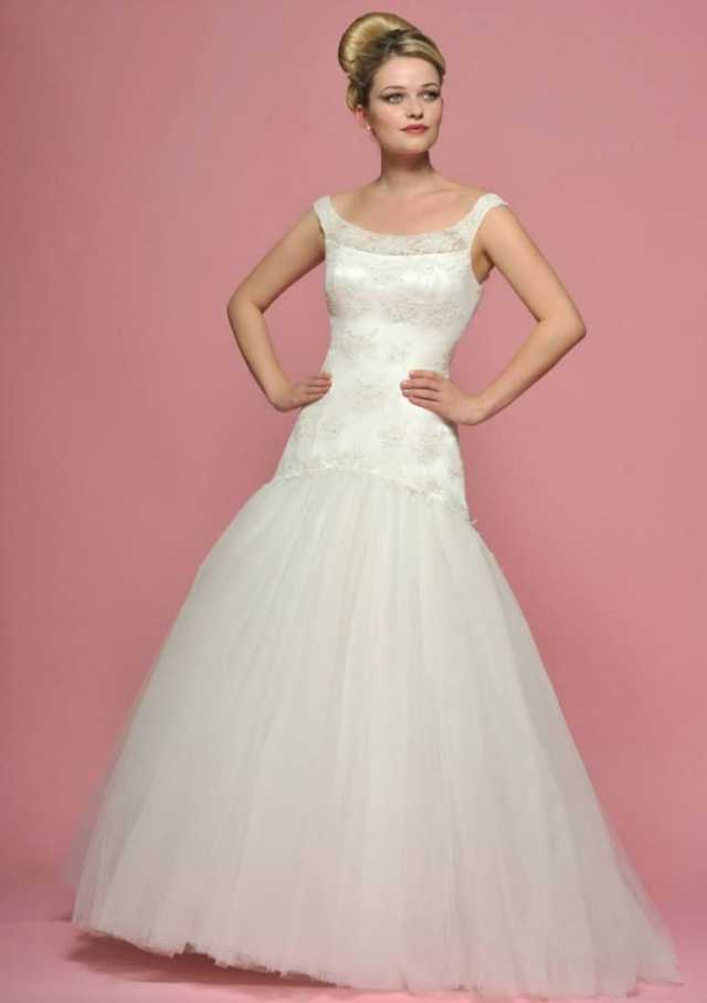 Beautiful off the should dress. The bodice of this dress if figure hugging and the tulle skirt makes a huge statement. The lace detail has tiny pearls attached