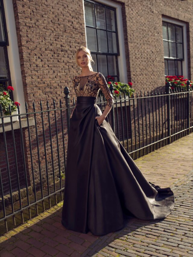 The amazing Kingsleigh, in black with a sheer illusion bodice beaded to perfection.
