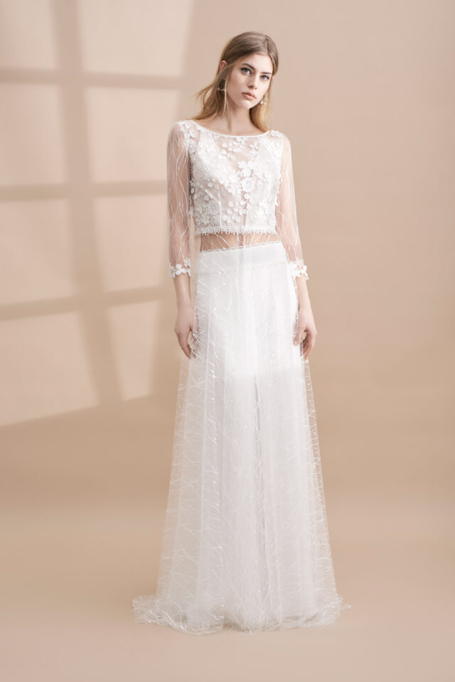 This hipster skirt and lace over dress create a unique summery, easy breezy bridal look from the amazing Rembo Styling.