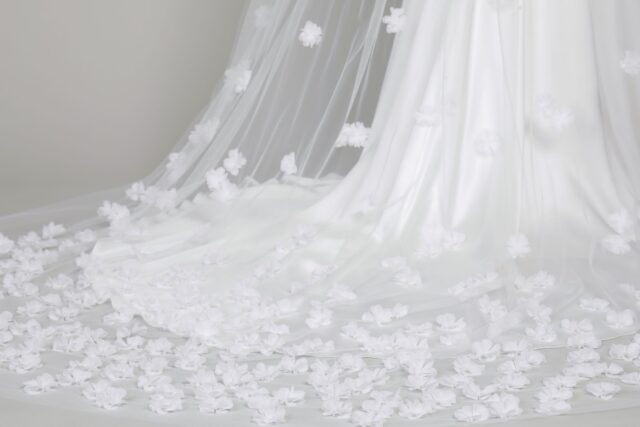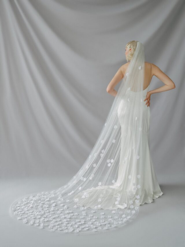 signature style veil with chiffon flowers hand-embroidered throughout.