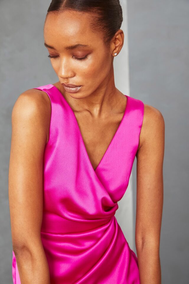 Gorgeous Satin Draped Bodice V Neck