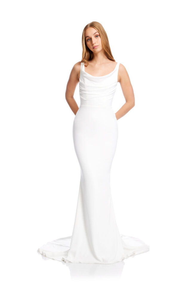 1990s minimalism a la Hayward. Defined by its effortlessness, Hayward features an organic drape detail across its neckline and structured bodice. Designed to draw in the waist, its fit and flare skirt cuts a flattering figure. Hayward is cut from luxe triacetate to deliver relaxed noughties energy.