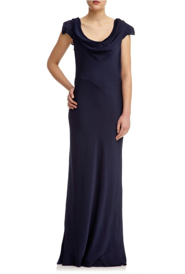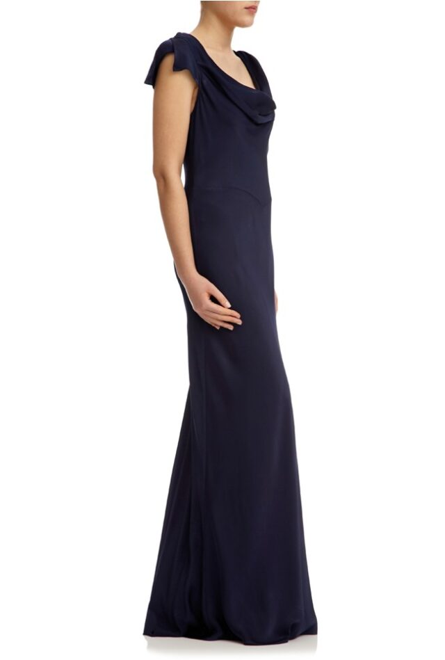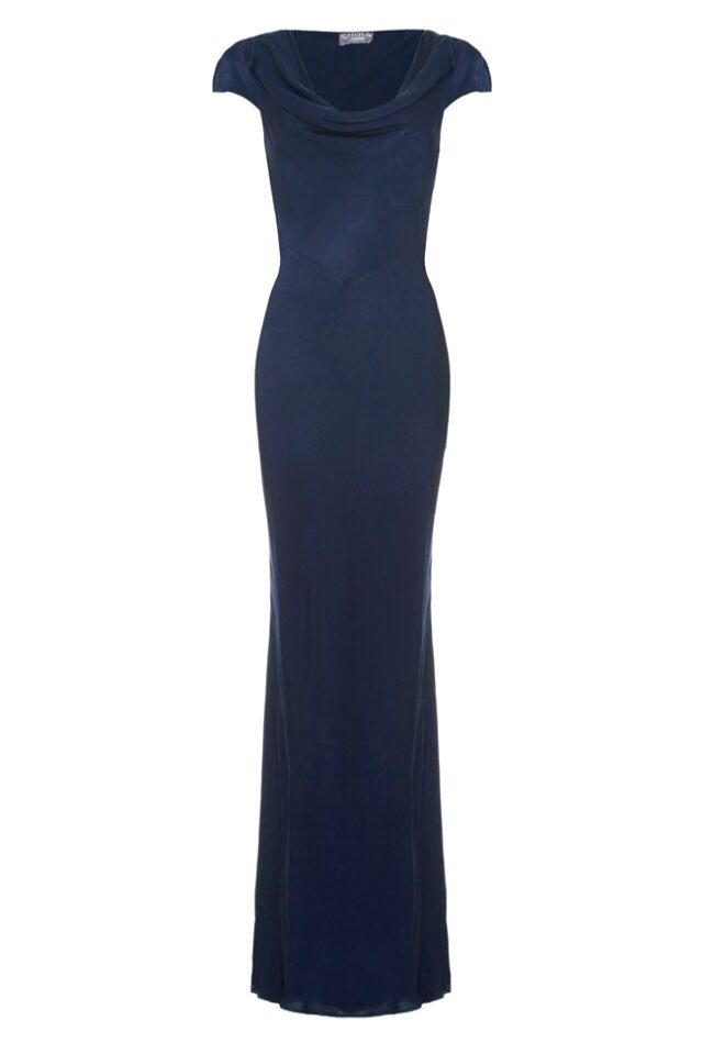 The Sylvia dress is beautifully crafted from satin and features an elegant cowl neck and delicate capped sleeves.