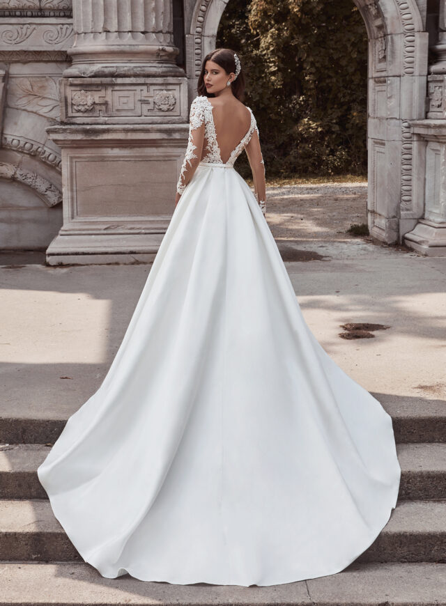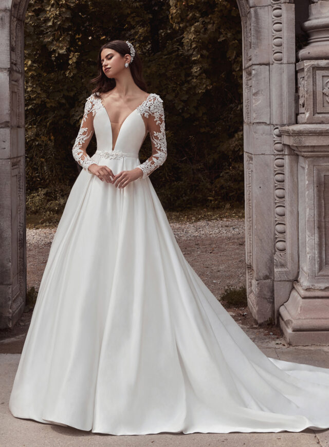 A beautiful Princess style dress with a deep V illusion neckline