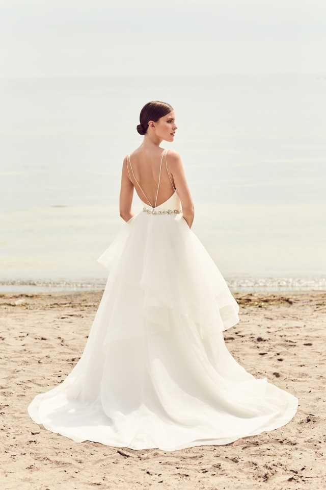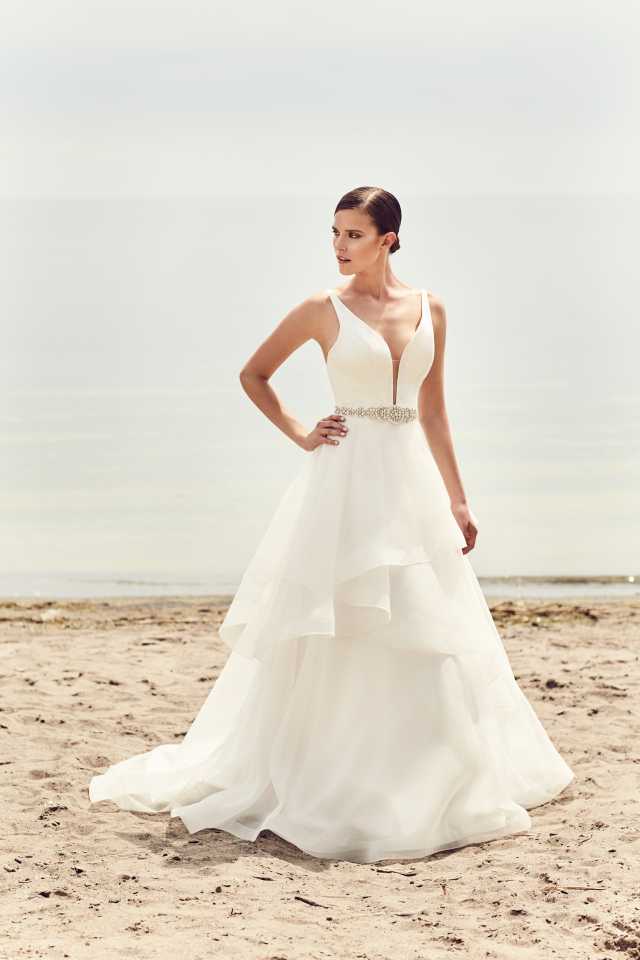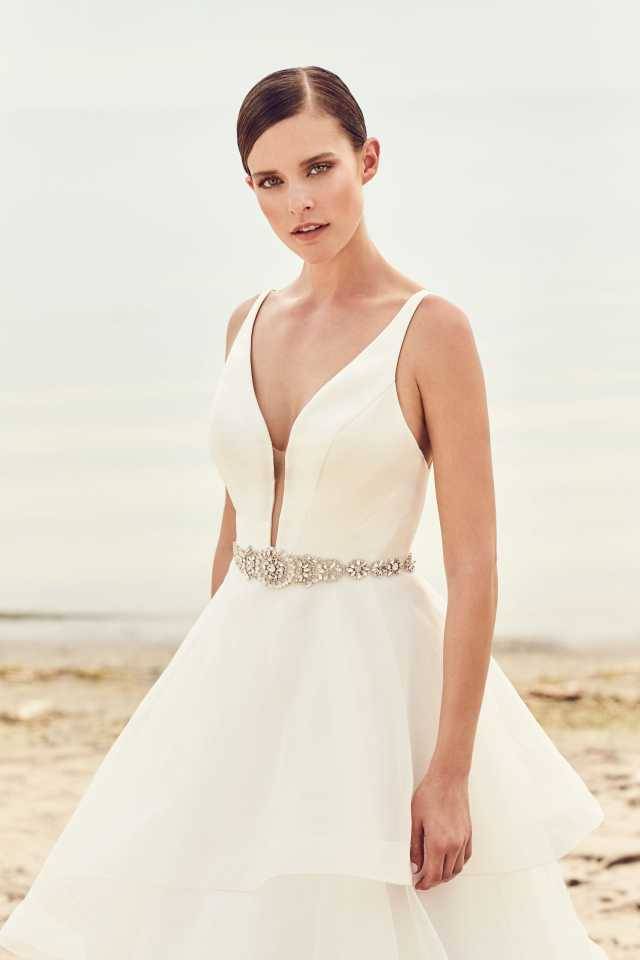 Multi tiered organza skirt satin bodice Beaded detachable belt on waist